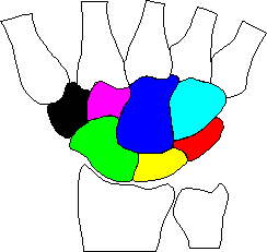 Click on the word or the picture: Scaphoid Lunate Triquetrum Trapezoid Trapezium Capitate Hamate Pisiform Wrist home page Anatomy Home Page Bones Home Page