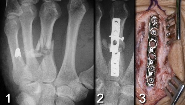 Figure Legend: High velocity gunshot wounds result in a wide zone of soft tissue injury. Fracture is associated with high-energy injuries (1) are more likely to have complications of delayed union, nonunion and hardware failure (2,3).