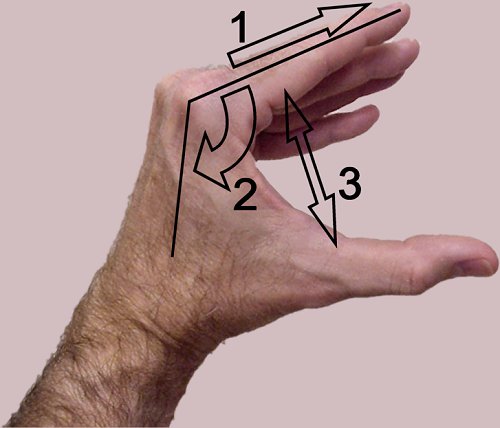 after hand disuse. The three features are maintenance of interphalangeal joint extension (1), metacarpophalangeal joint flexion (2)