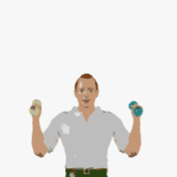Hold weights at shoulder level. Raise the right arm overhead, back down and repeat with the left arm.