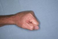 | The injury: point blank handgun injury, palmar to dorsal through the middle metacarpal. Contusion of the third web space common digital nerve. |