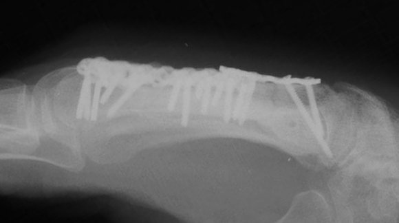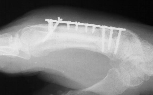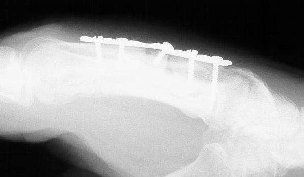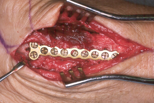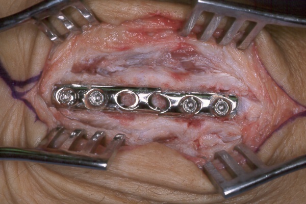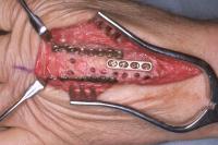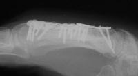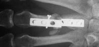 | This was the longest plate available, not optimum, but had six cortex purchase on each side of the graft. |