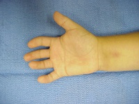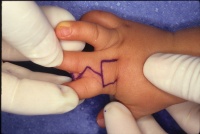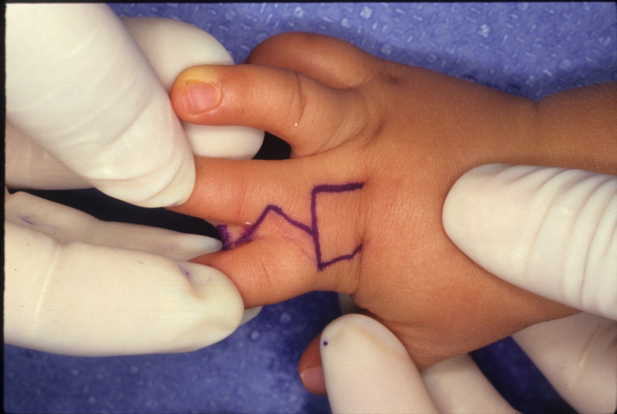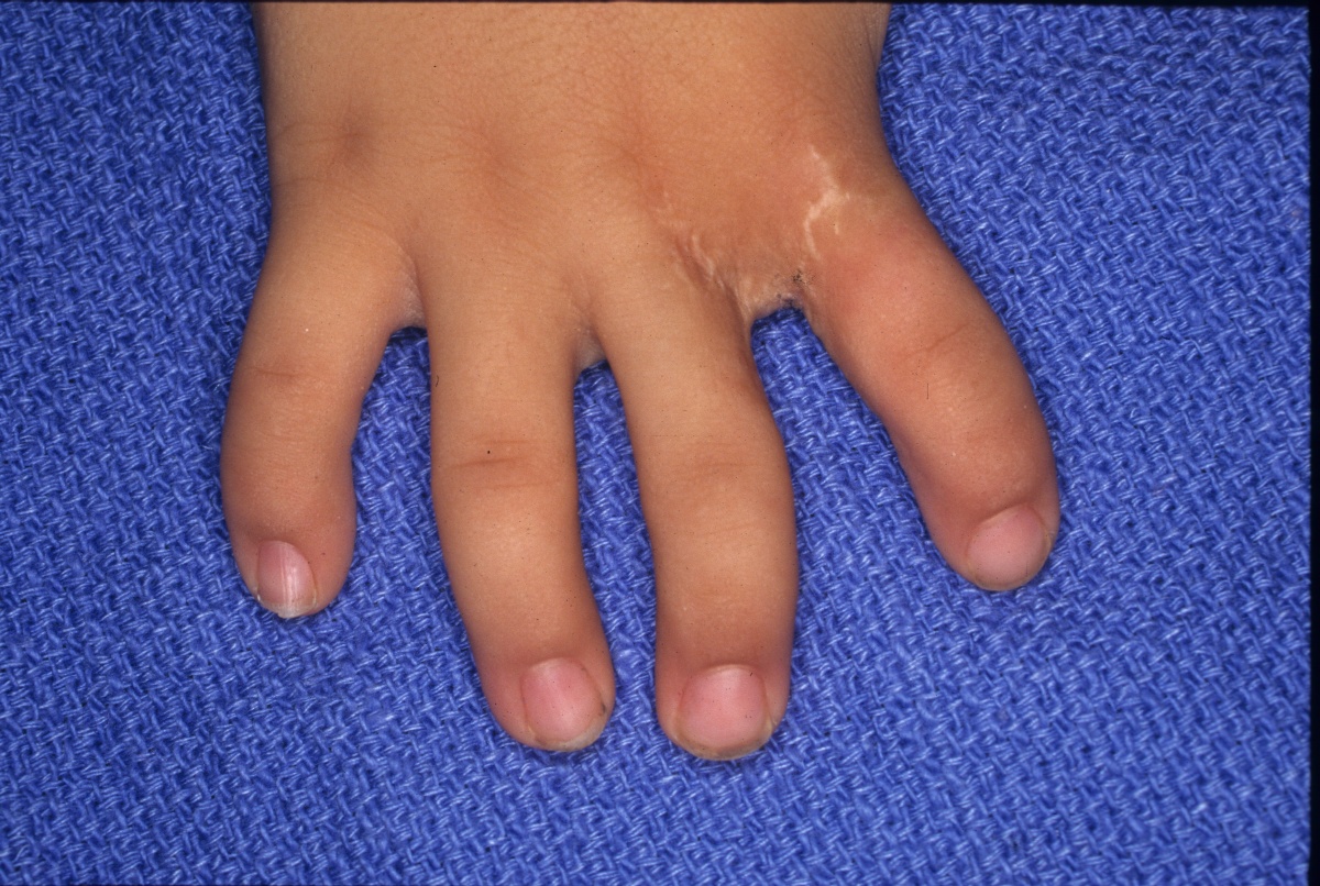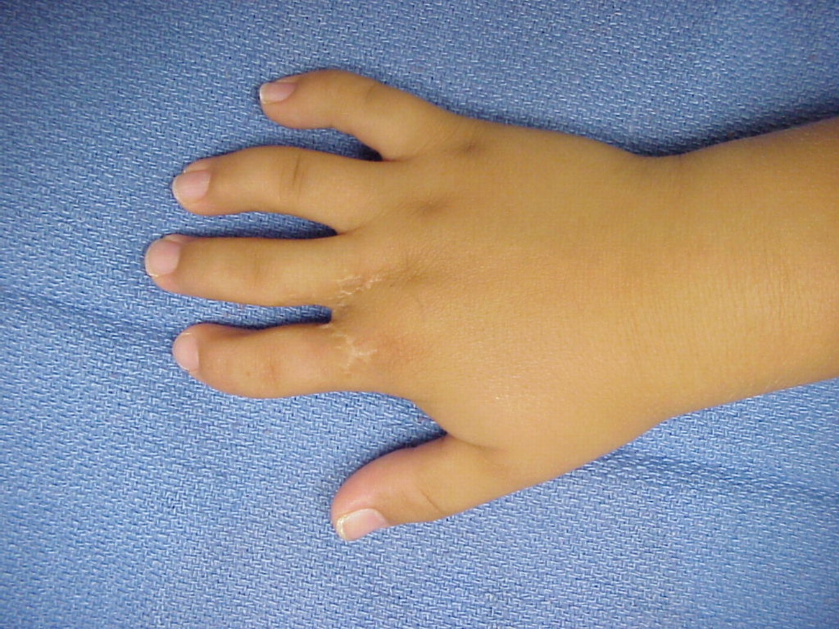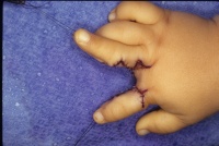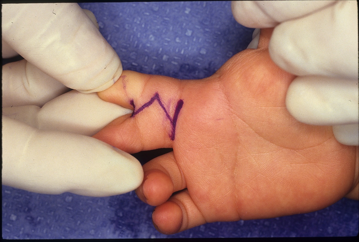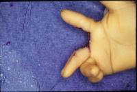 Simple incomplete syndactyly with a fairly proximal web can be released with local flaps and no skin graft in some cases. This is an example using a dorsal skin flap for web reconstruction.