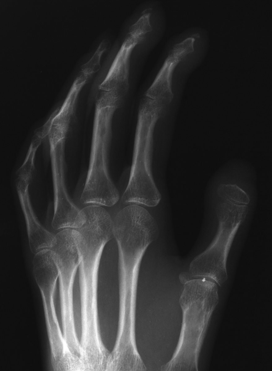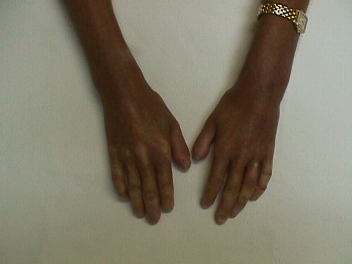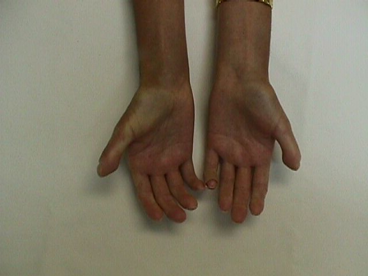 acroosteolysis. This patient with scleroderma demonstrates all of these