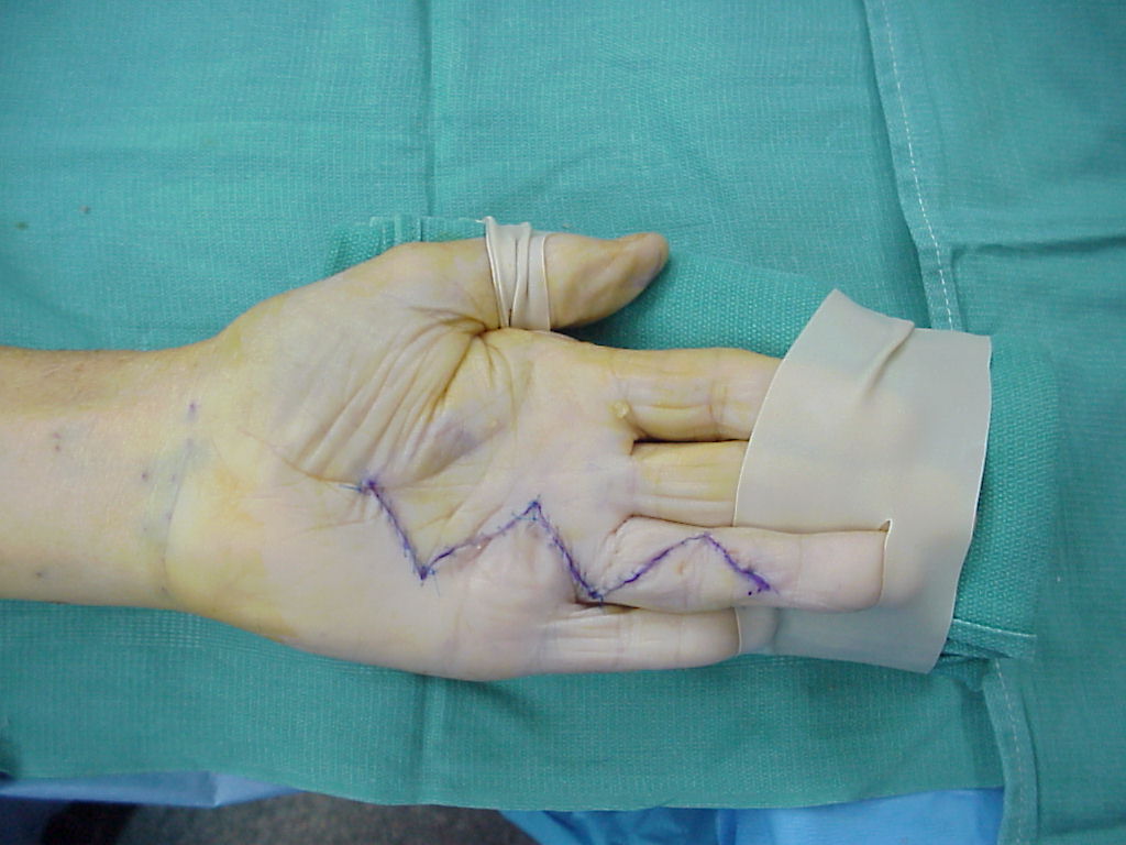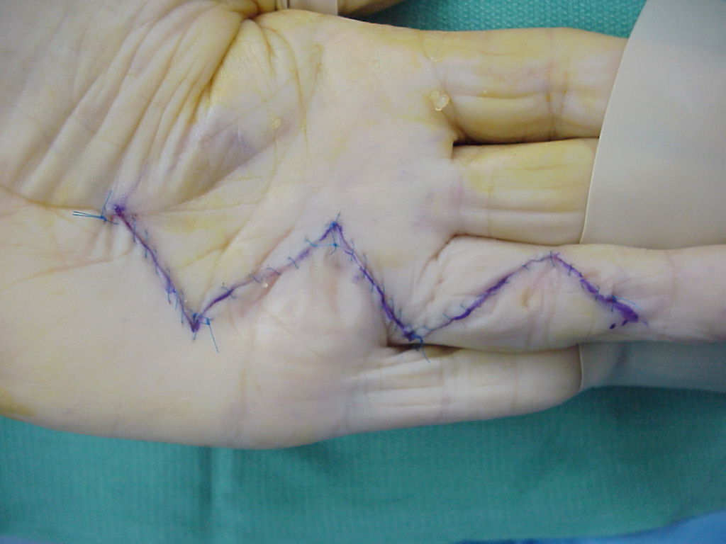 Clinical Example: Palmar Fasciectomy Bruner incision transverse fascia preserved