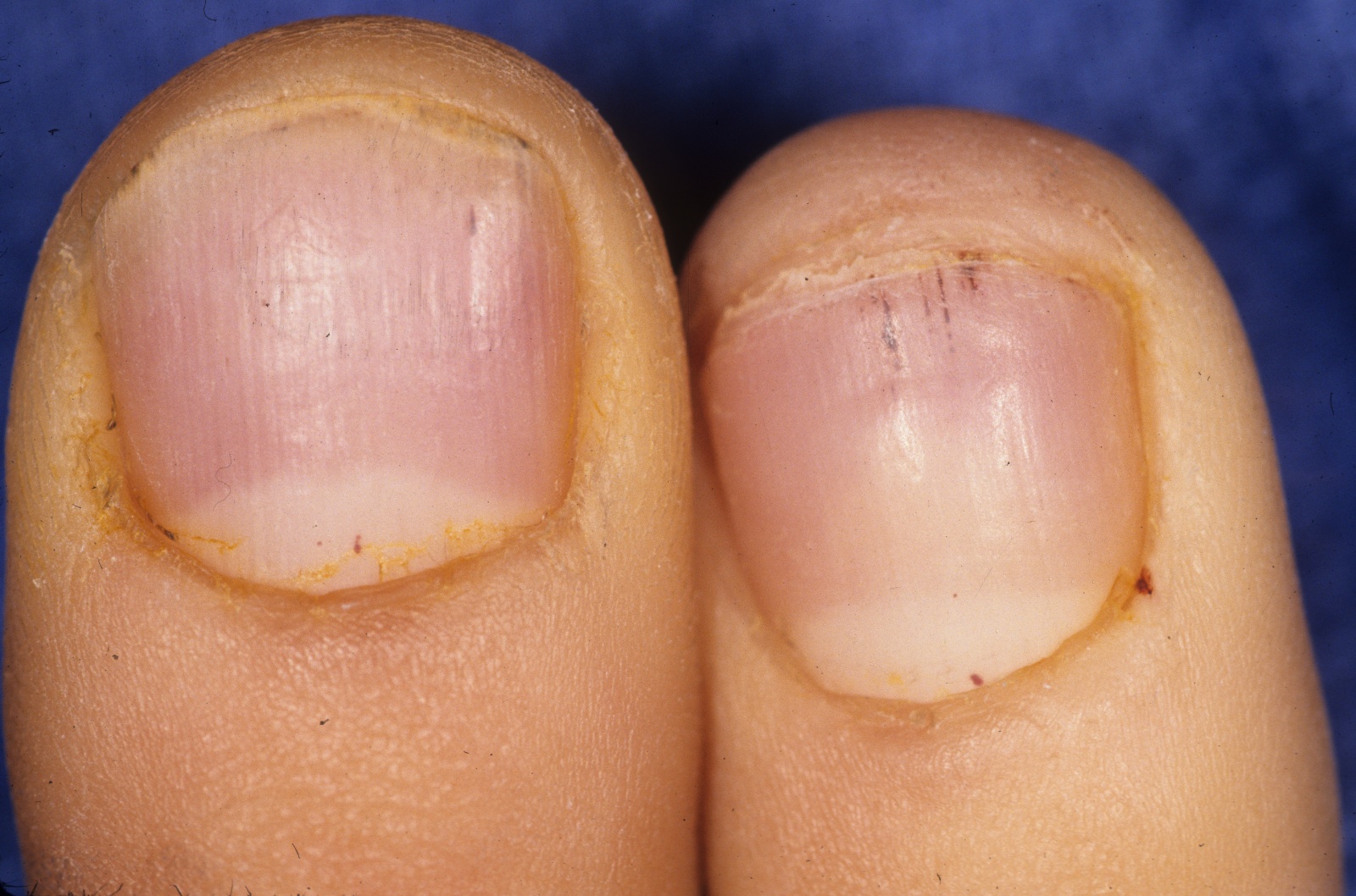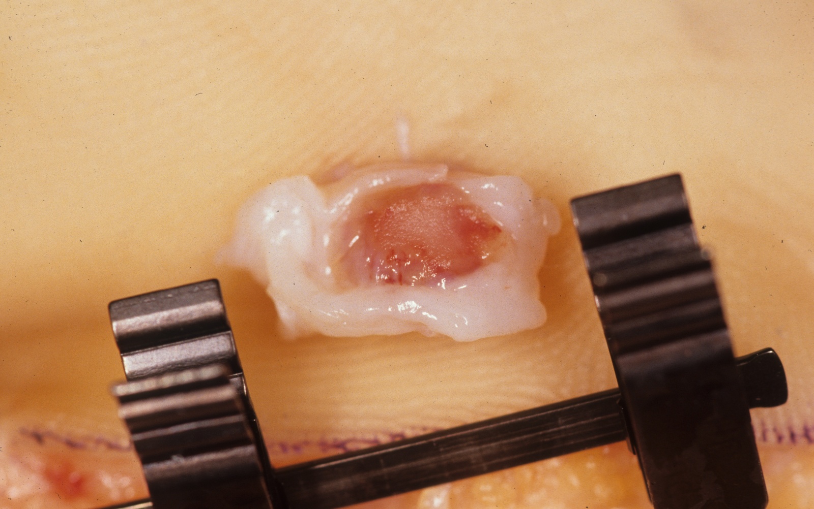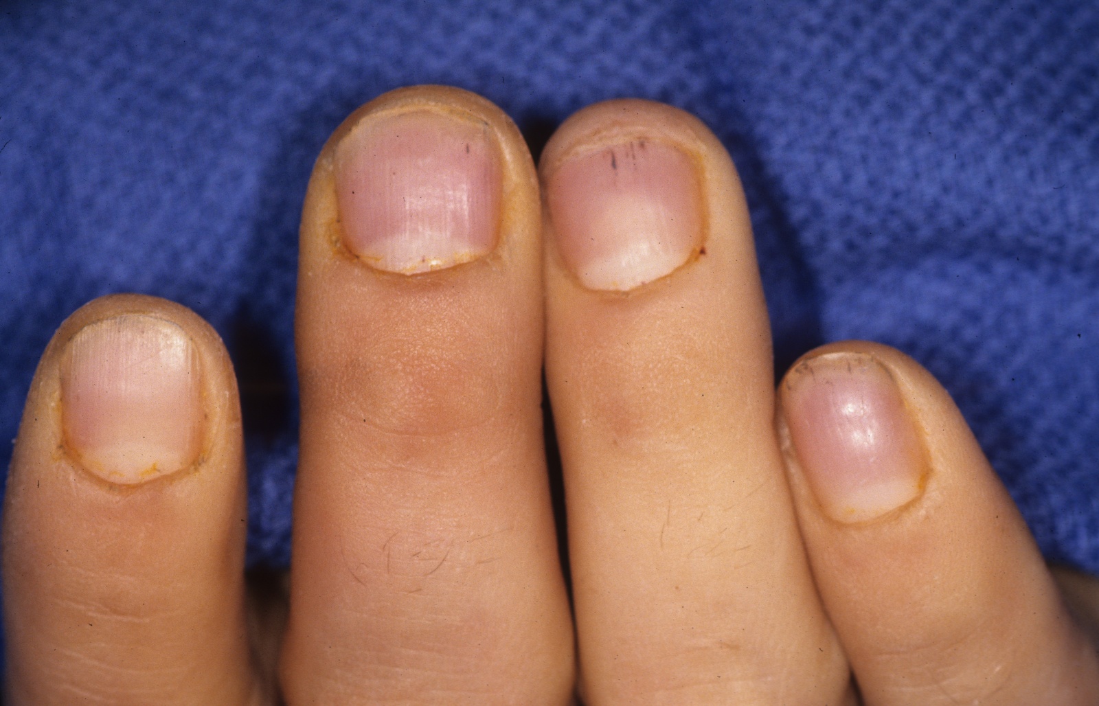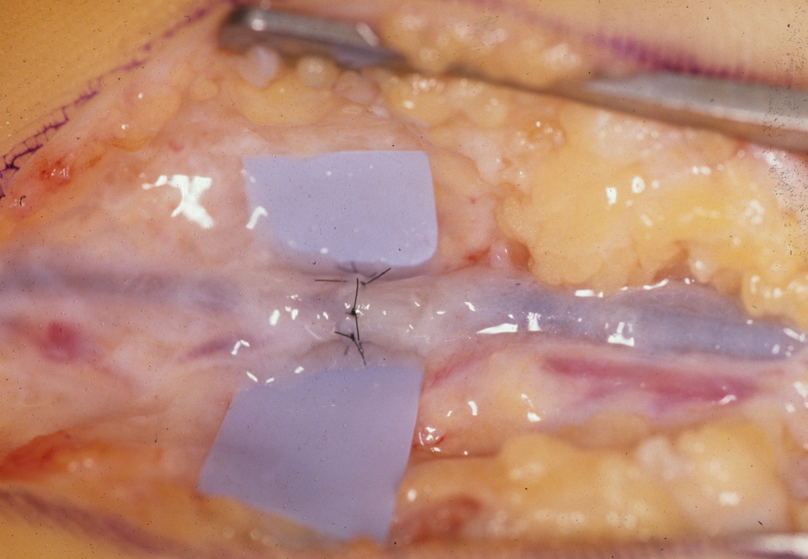 large arteries. The ulnar artery in the palm is prone to injury because it runs through the heel of the palm, an area which people lean on, push with, and hit (hypothenar hammer syndrome). An injured artery may form an aneurism containing blood clots which can break off, running downstream into the fingers, where they block blood flow and trigger blood vessel spasm. This is an example of such a situation, treated by removing the damaged arterial segment and repairing the ends to restore flow and prevent further emboli. |