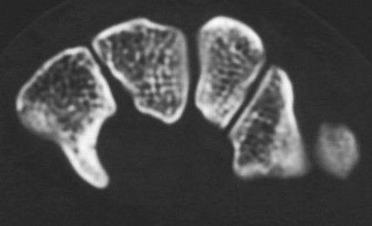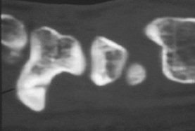 | Hook of hamate fracture, plain films normal even in retrospect. Clearly seen only on the 3D CT. |