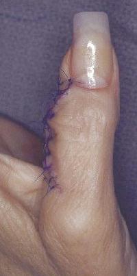 | There are many methods to fuse interphalangeal joints. In this case, a Herbert screw was used for arthrodesis fixation of an unstable thumb interphalangeal joint. This case also demonstrates the eponychial splitting approach to the joint. |