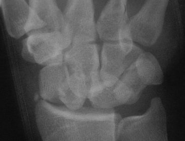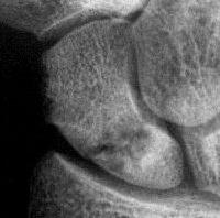 | Case 6. A dorsal approach for this proximal pole fracture would have been a better choice. |