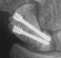 | The poorly placed screw remained a source of pain, and the hardware was removed along with a styloidectomy. |