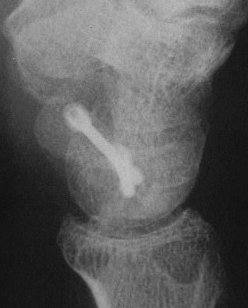 | Case 7. This nonunion patient's scaphoid and iliac crest were unusually soft bone. |