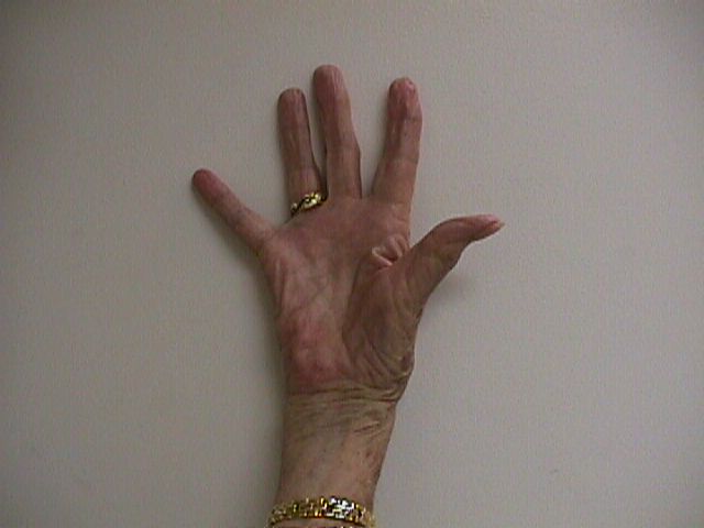 | And another patient with the metacarpal adducted and hyperextension of the metacarpophalangeal joint. |