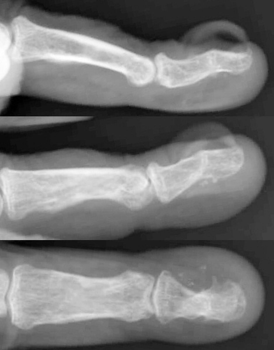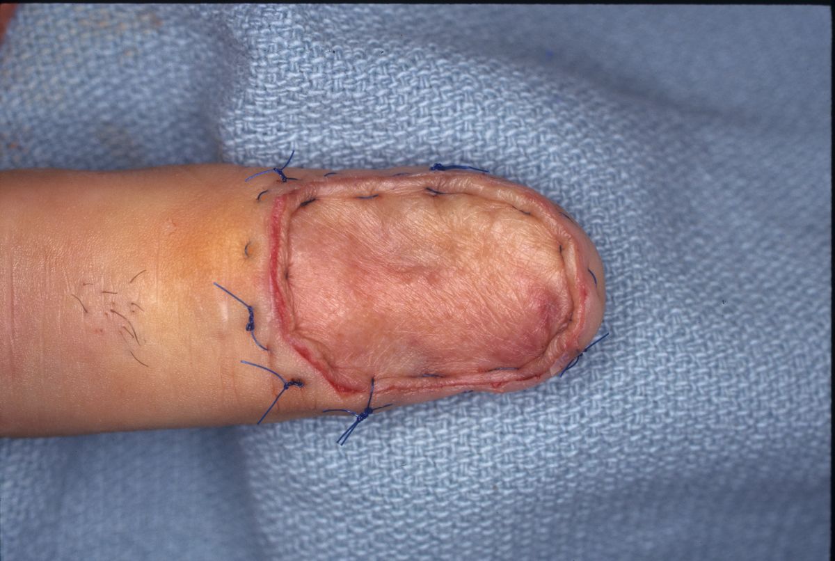 The fingernail complex is ...complex. Local flaps are unavailable for resurfacing large nail bed defects, and regional or pedicled flaps are not justified in most situations. Fortunately, the dorsal cortical bone of the distal phalanx provides a well vascularized stable bed for a skin graft. These three cases illustrate the use of full thickness skin grafts for nailbed defects following nailbed ablation.