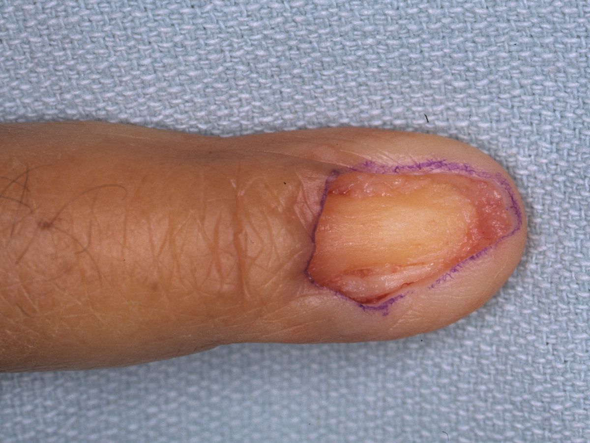 Defect following en bloc resection of entire nail complex.