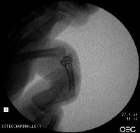 | Intraoperative fixation and motion: Initial attempts of micro screw fixation were not successful, and wire cerclage was used: |