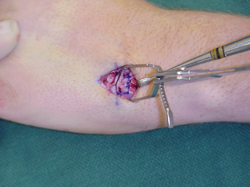 | Operative approach, similar to the exposure for a volar plate arthroplasty: |