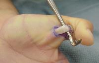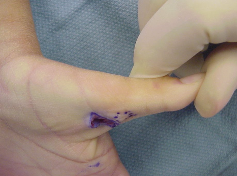 thumb digital nerves, more easily injured than in surgery for the adult