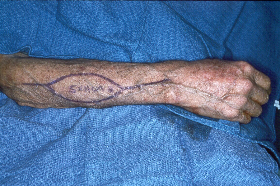 | Radial forearm flap was contraindicated by an occluded radial artery. |