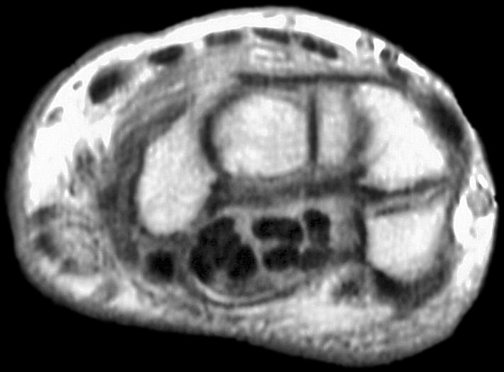 for a small finger flexor tendon rupture in the carpal tunnel. The etiology