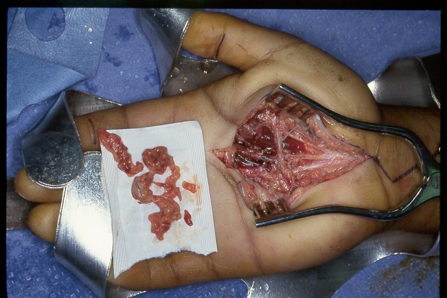 spaces in the hand, fingers and forearm. The anatomy has been known since