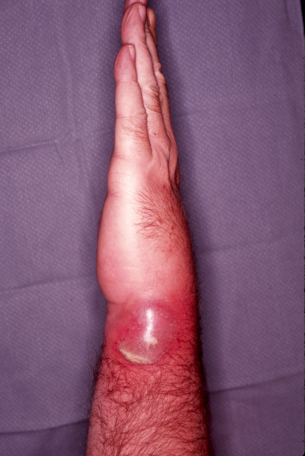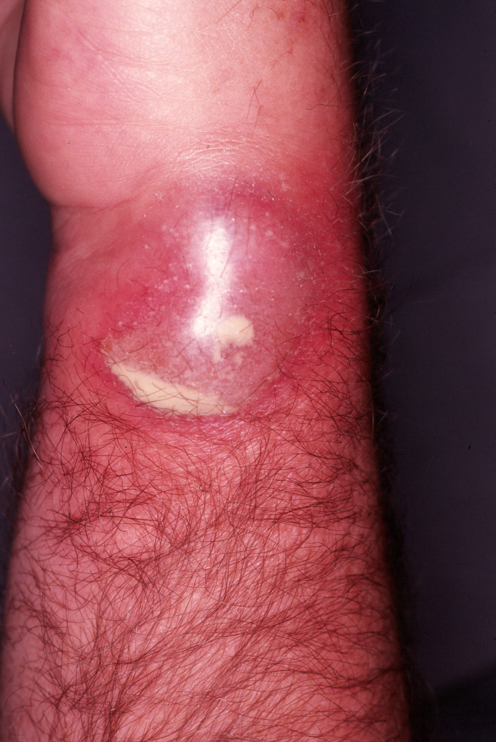 | This gentleman developed an unusual blister like abscess from a folliculitis. |