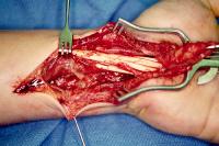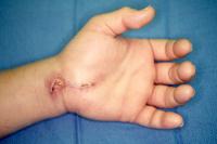 | Elective hand surgery has a very low risk of infection. However, when infections do occur following surgery in the moving parts of the hand, the problem can be catastrophic, because the slippery synovial tissues which cover the inner moving surfaces both allow infection to grow and allow it to spread easily to other parts of the hand. |