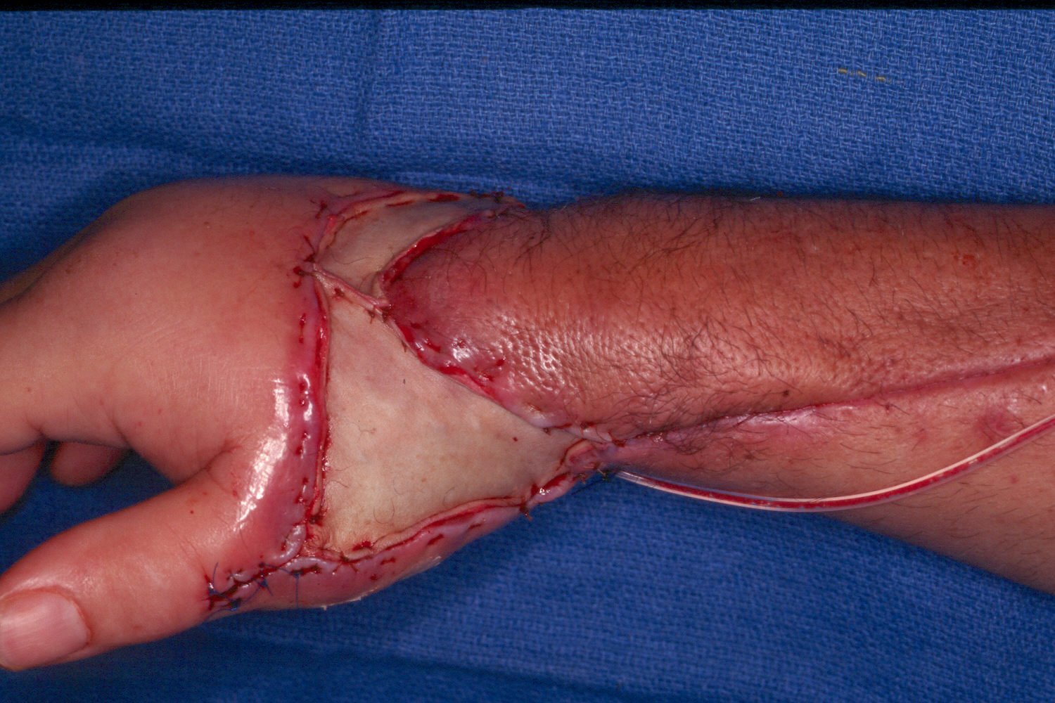 | This allowed full closure with skin graft, which healed uneventfully. |