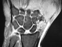 | Case 1. Chronic complete scapholunate ligament disruption seen on MRI |