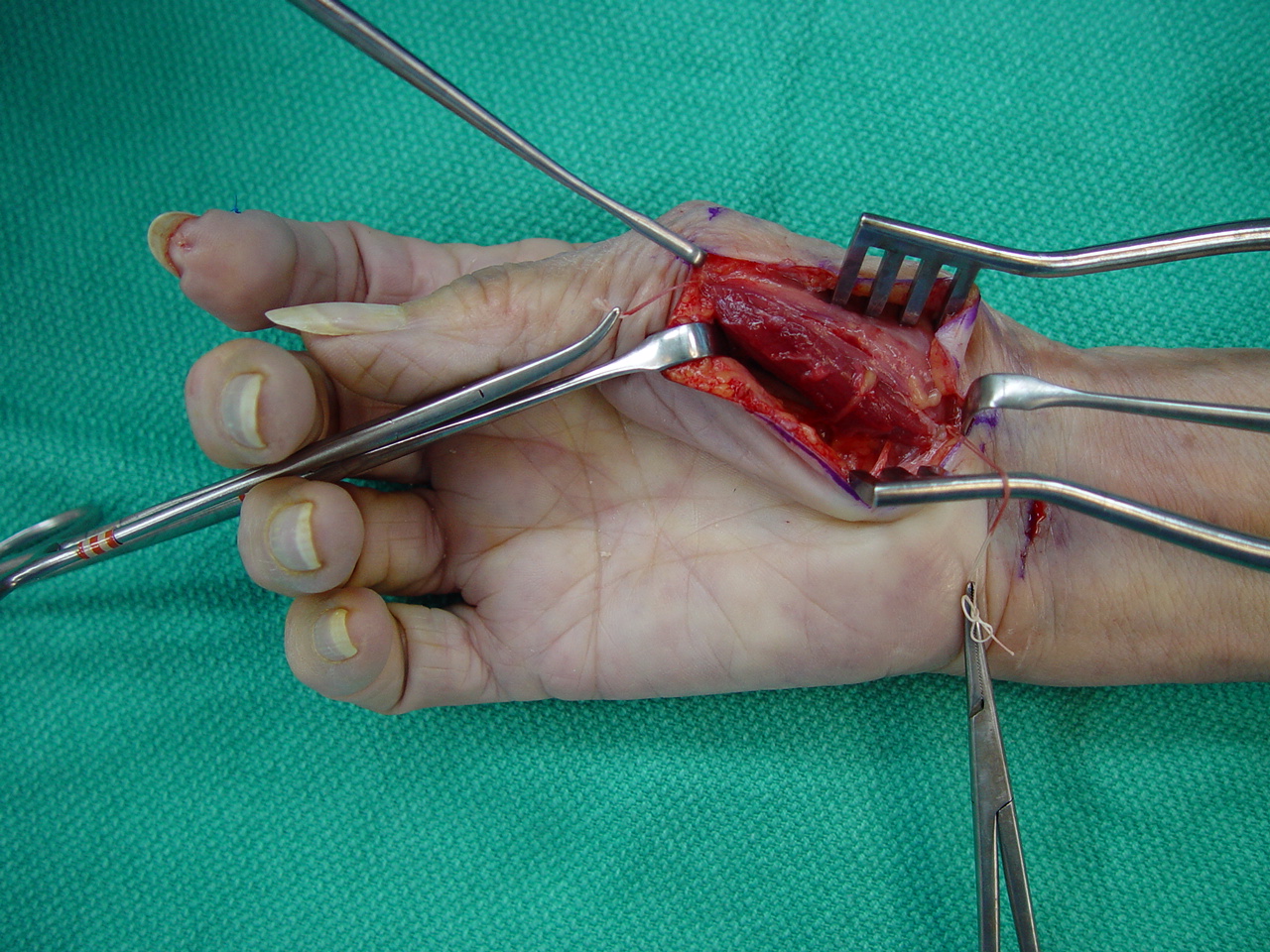 of the palmaris longus, superficial flexor, extensor indicis, extensor