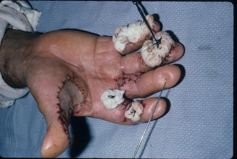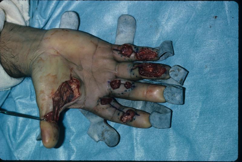 | Radical excision, digital nerves preserved: |