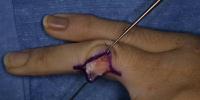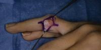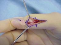 | This was treated with simple excision and collateral ligament repair to local tissues. |