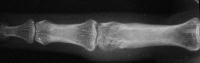 | Case 2. Mass developing after a lateral dislocation of the proximal interphalangeal joint of a 34 year old woman. |
