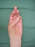| Revision surgery may be required after carpal tunnel release because of persistent or new symptoms following surgery. When postoperative problems are thought to be due to incomplete release, nerve damage during surgery, or scar tissue tethering nerve excursion, open release is indicated, often paired with an adjunct procedure. Local flaps may be used to increase nerve vascularity and reduce pain from scar tethering. Cases below show variations on palmaris brevis and hypothenar fat pad flaps in this context. Each of these patients had symptomatic relief from the procedure described. |