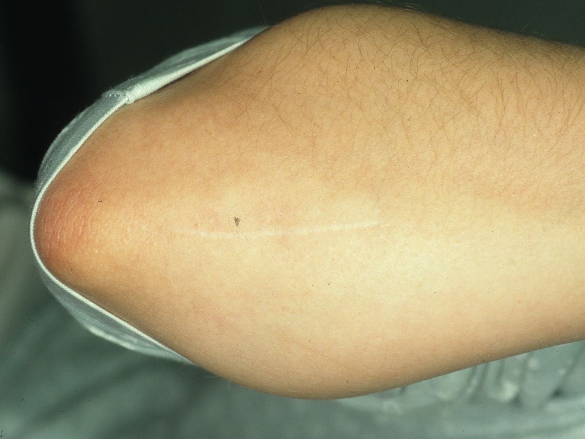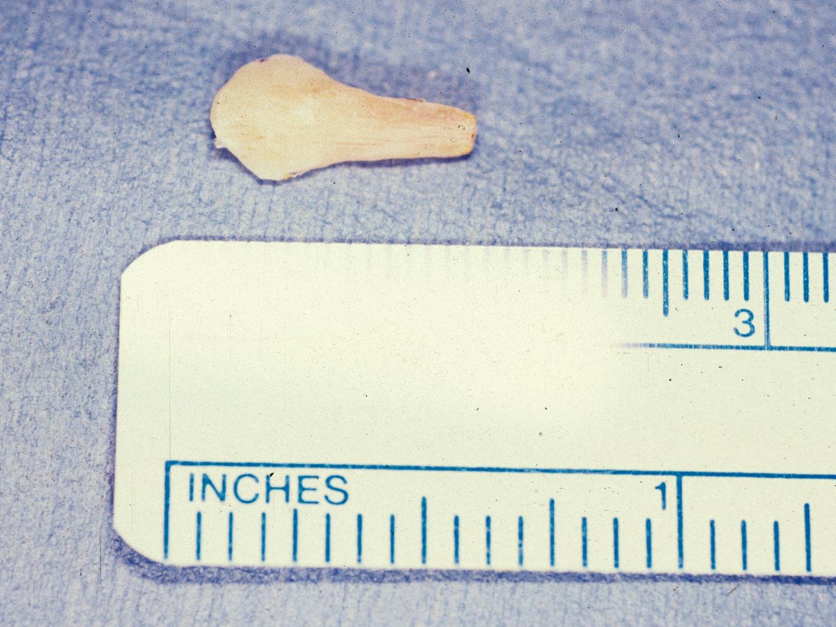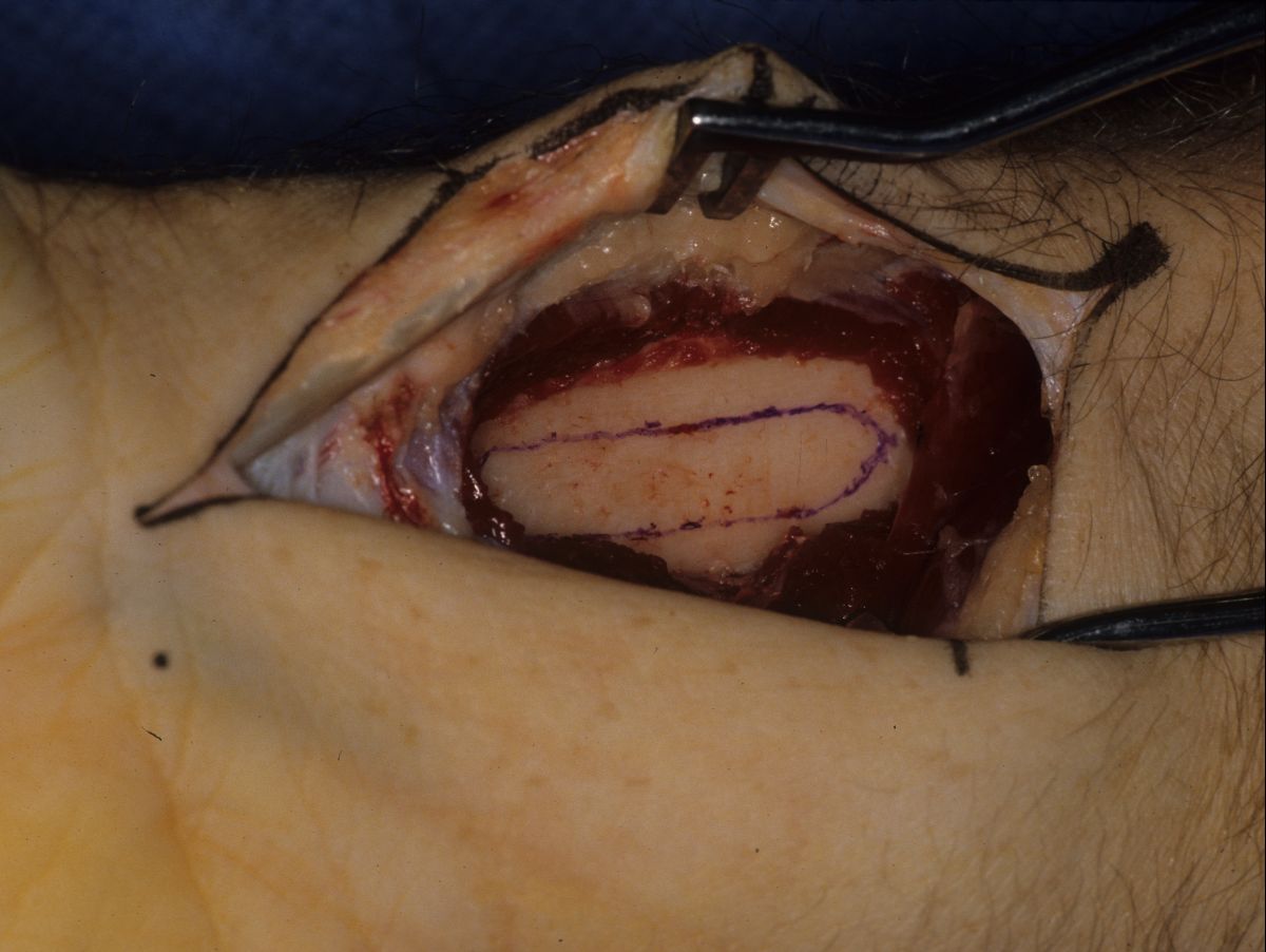| The bone was windowed laterally to remove what was confirmed to be an inclusion cyst. |