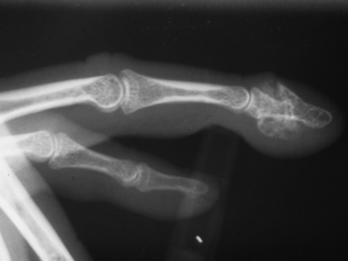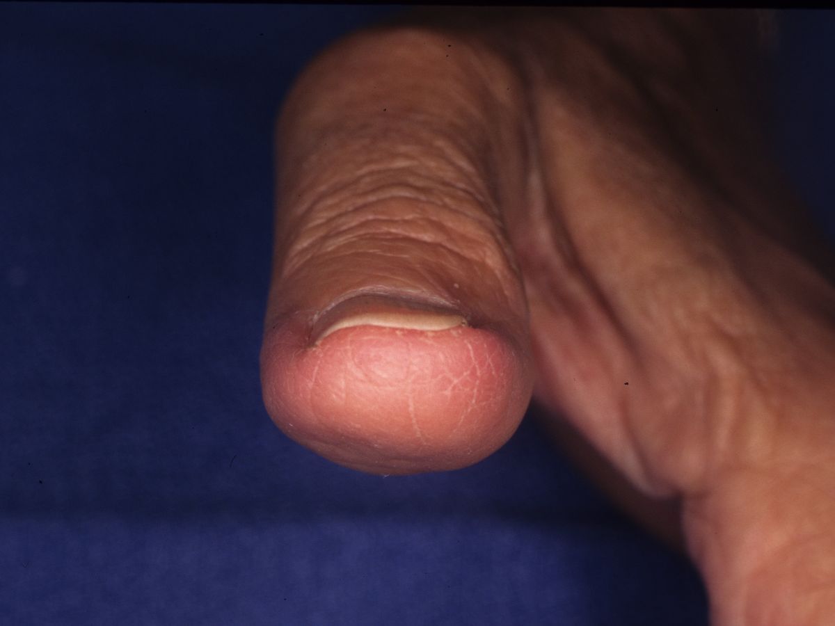 | Case 1. This young woman presented with a painless distal phalanx and nailbed deformity which developed slowly during her teens |