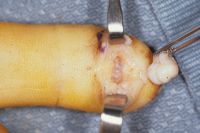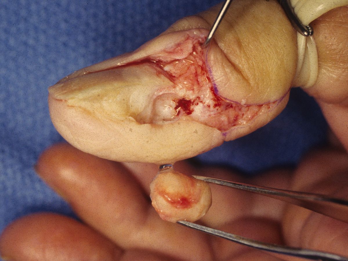 | The tumor was accessed through an eponychial splitting lateral incision. |