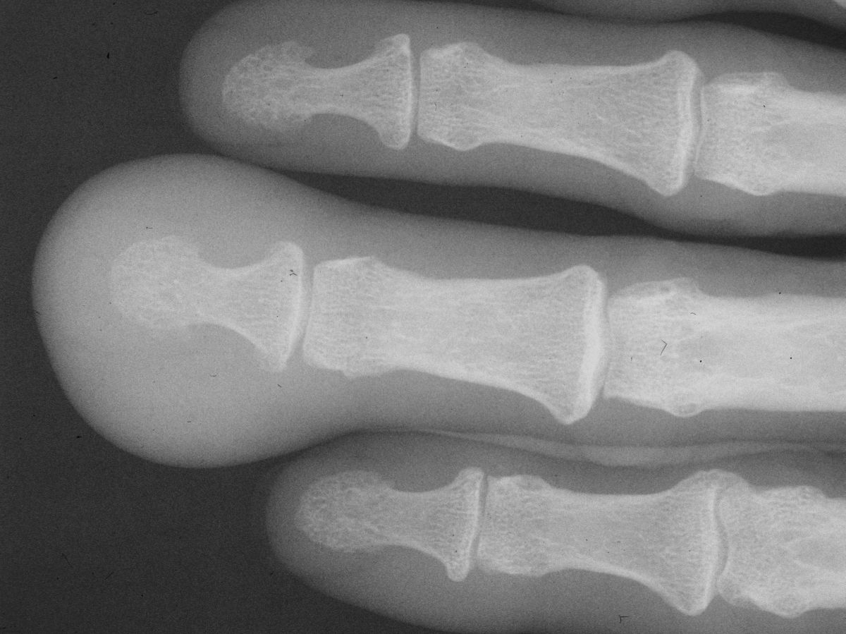 | This painless fingertip pulp tumor had developed slowly over nearly ten years. |