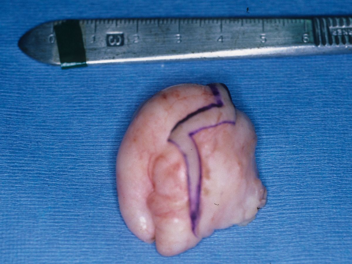 | Anticipating the need for skin resection, a primary zigzag incision was used. |