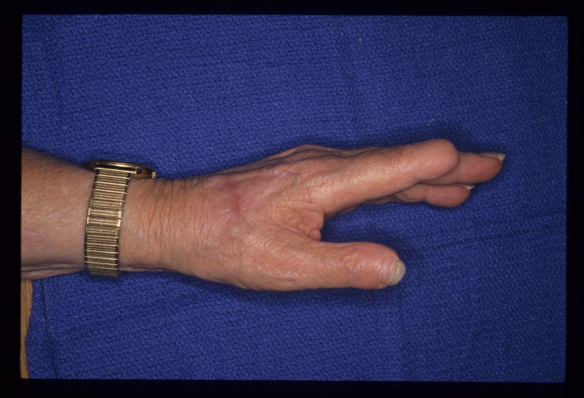 ischemia of the radial aspect of her left hand during a carotid