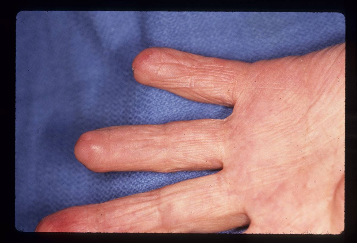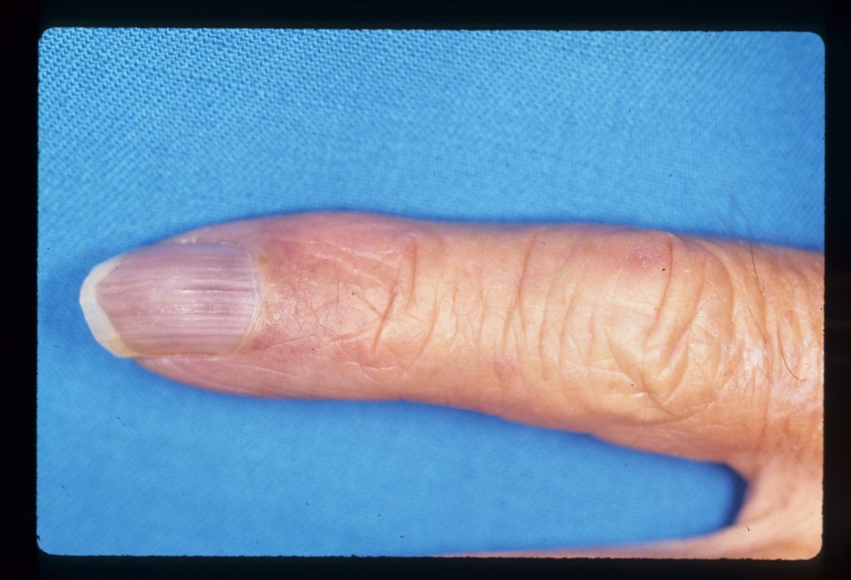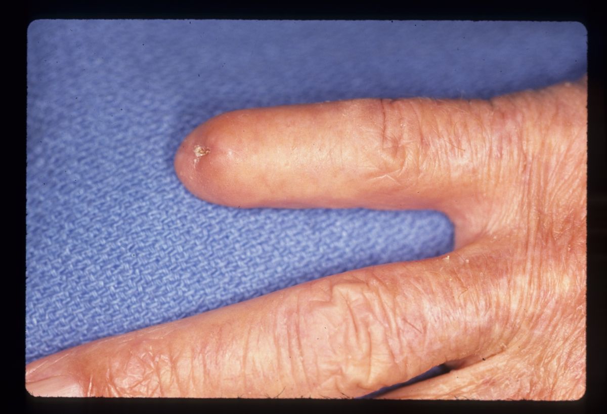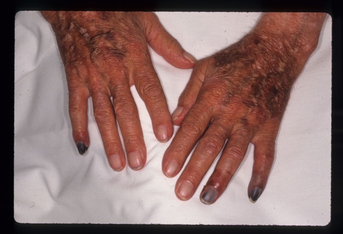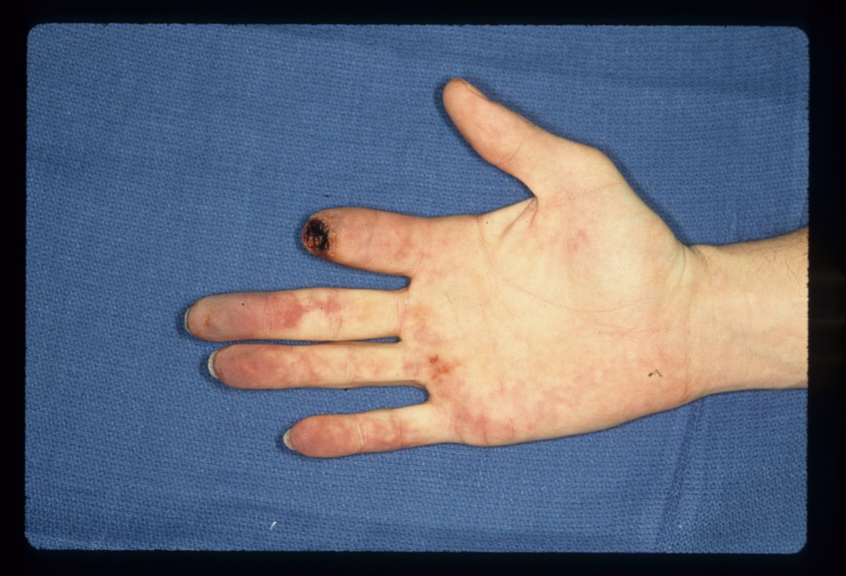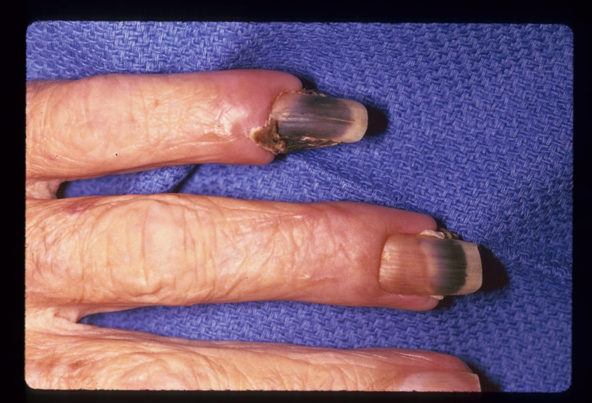 multiple ischemic fingertips was managed with local care until