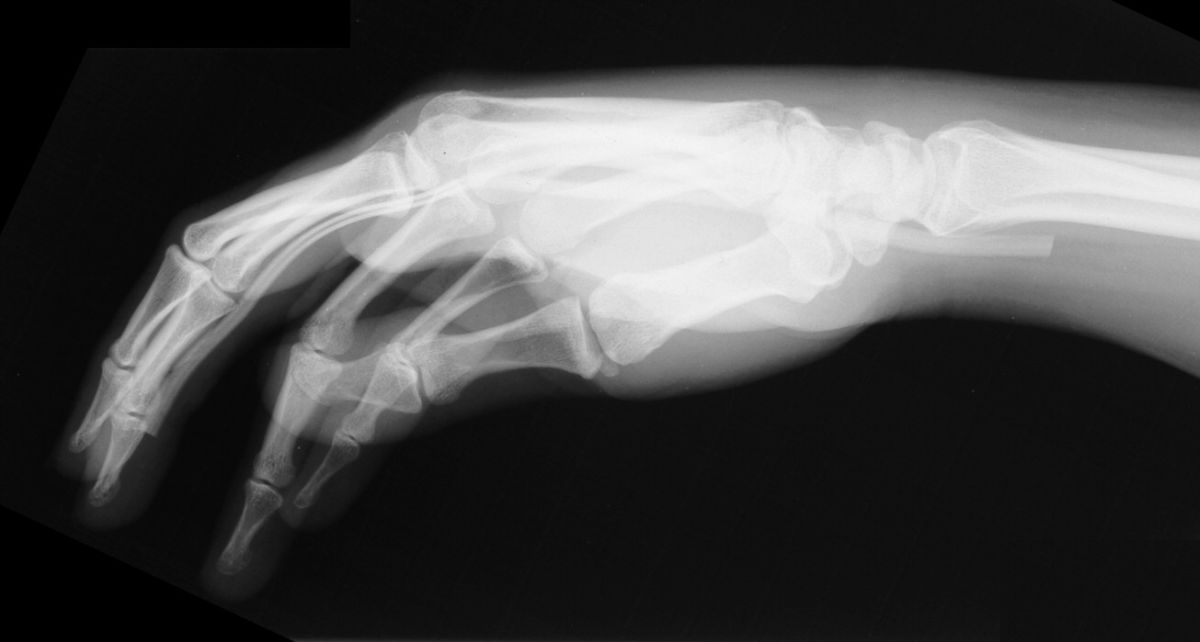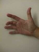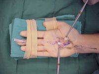 wound, sutured to the tendon spacer and pulled out the fingertip. |