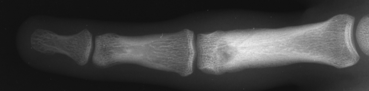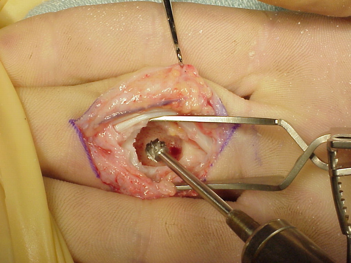 excision of an osteoid osteoma of the ring finger middle phalanx head.