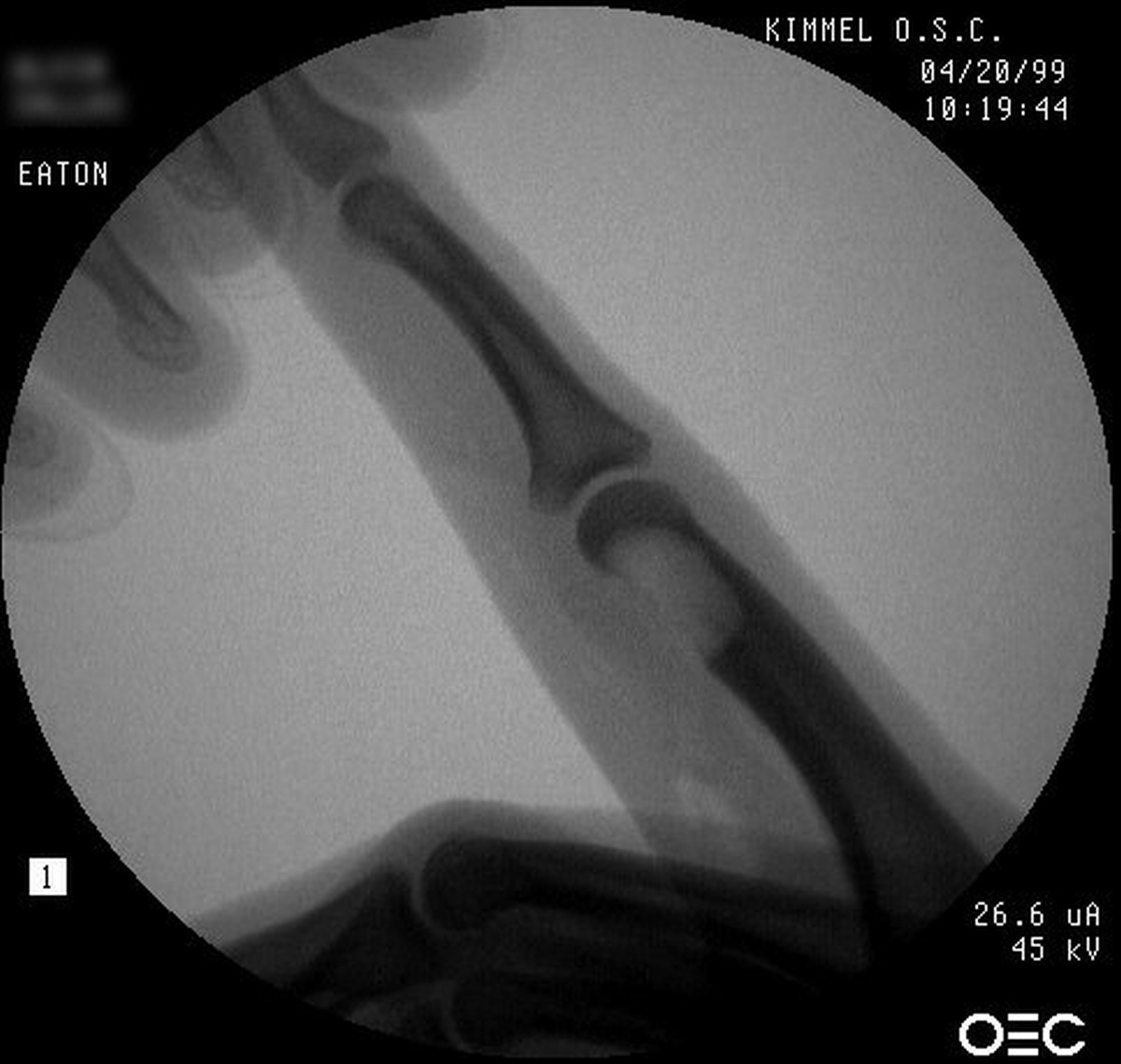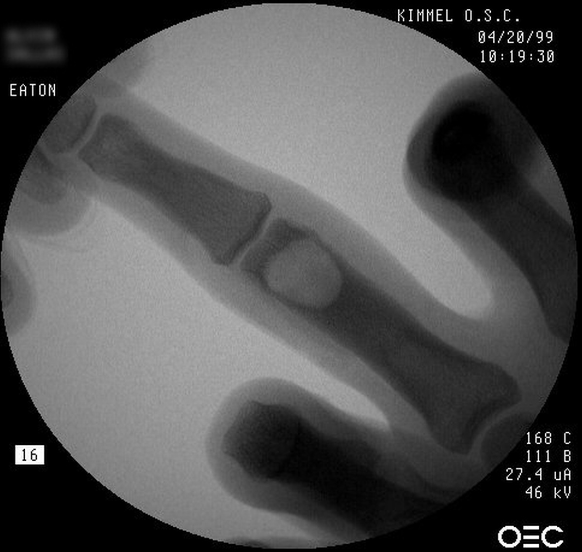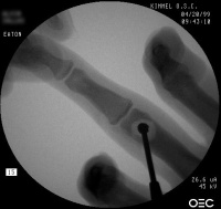 | Case 2. (Case of Charles Melone MD) This patient presented with a pathologic scaphoid fracture associated with an osteoid osteoma. |