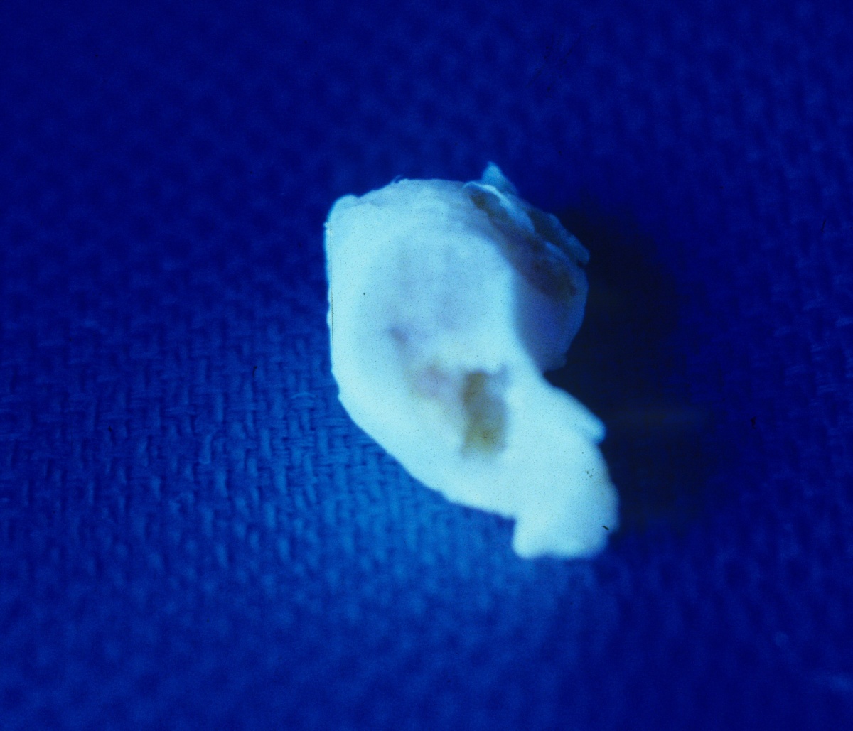 ultraviolet light shows light yellow fluorescence of the central nidus. |