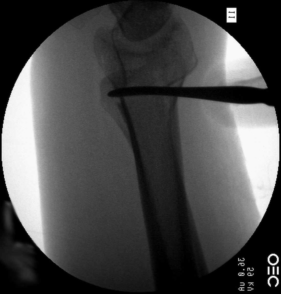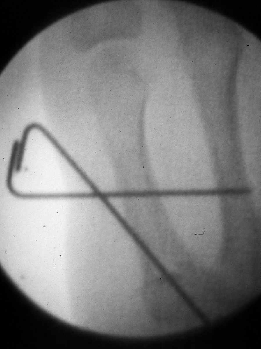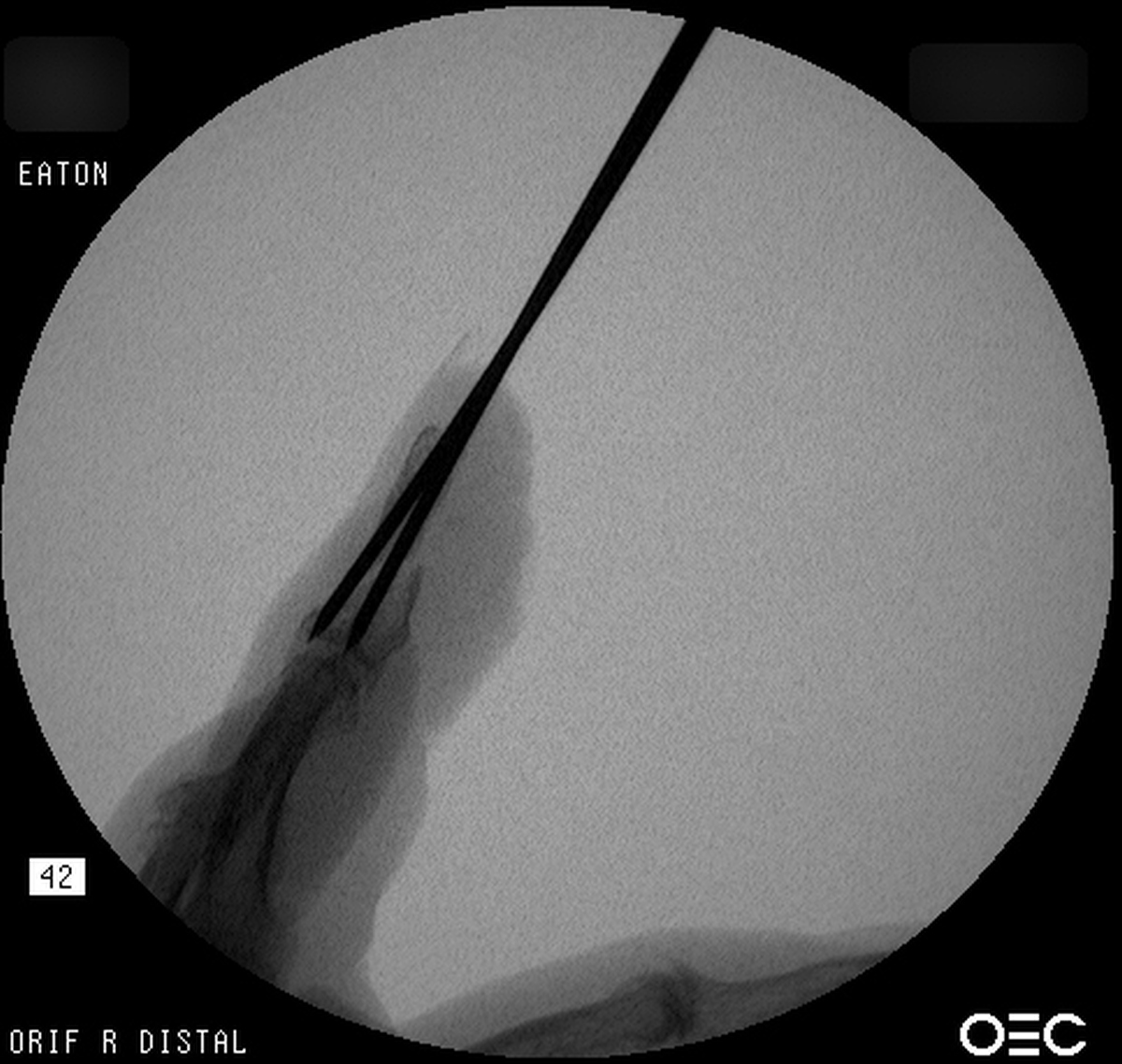 relating to infection risk and details of pin removal. One issue is that smooth pins are used, and may loosen or migrate. One solution to this is to leave the pins protruding through the skin, bend them to create a zone of overlap and glue the overlap together with thermoplastic splint material. This prevents pin migration and improves long term stability of the fixation. These cases demonstrate this technique in different scenarios of percutaneous fracture pinning. There are many other different options for each of these injury patterns. |