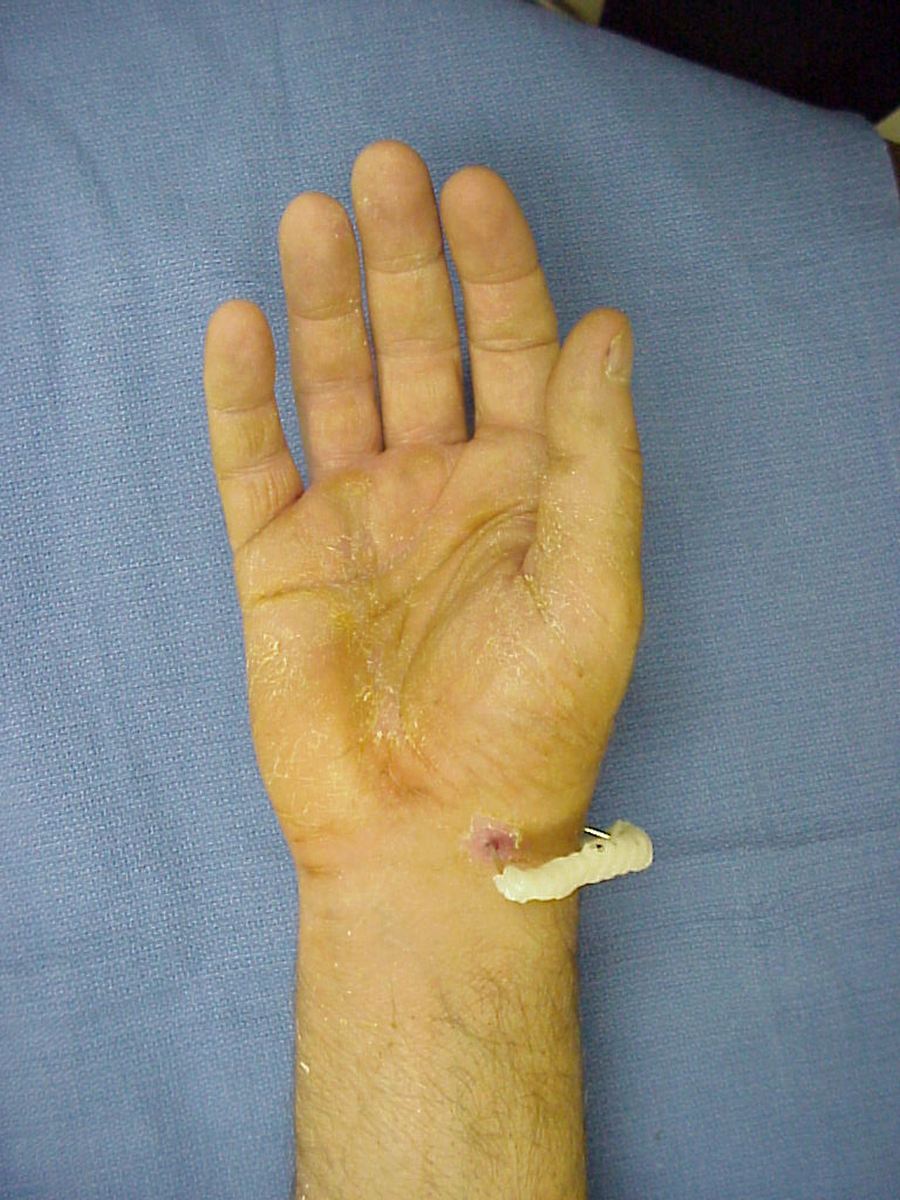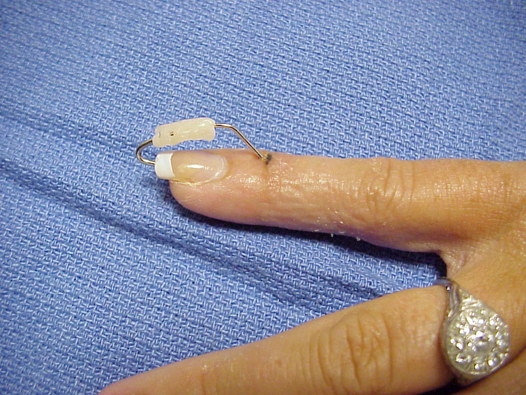 | Thermoplastic bonding of the protruding ends: appearance at one month. |