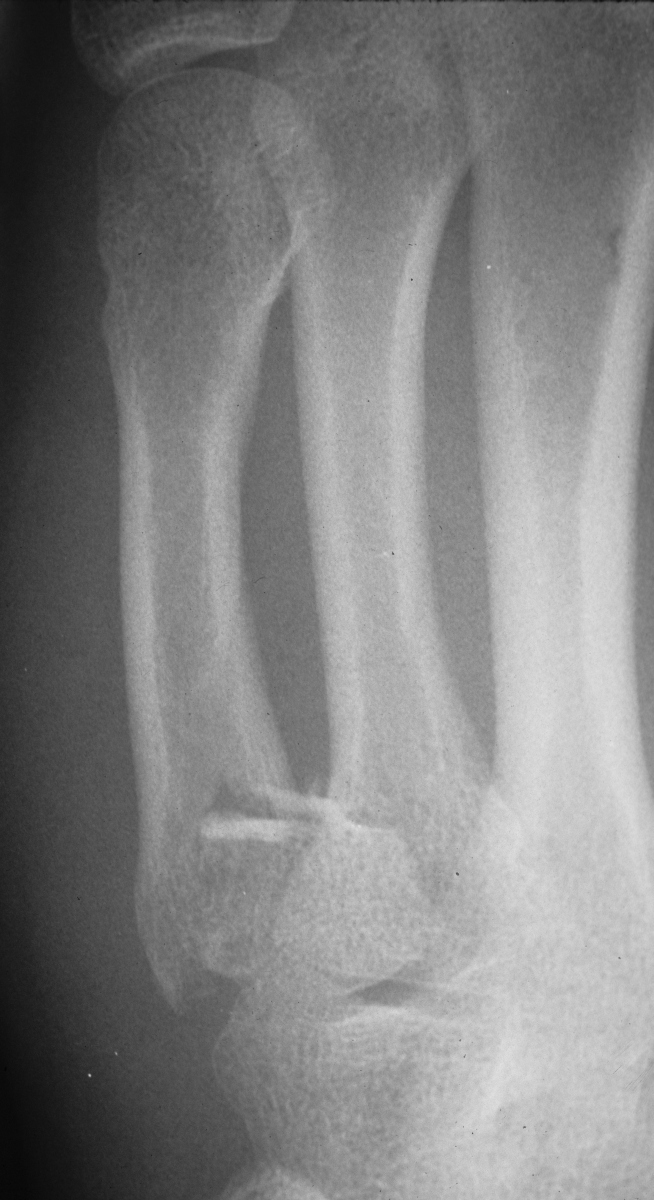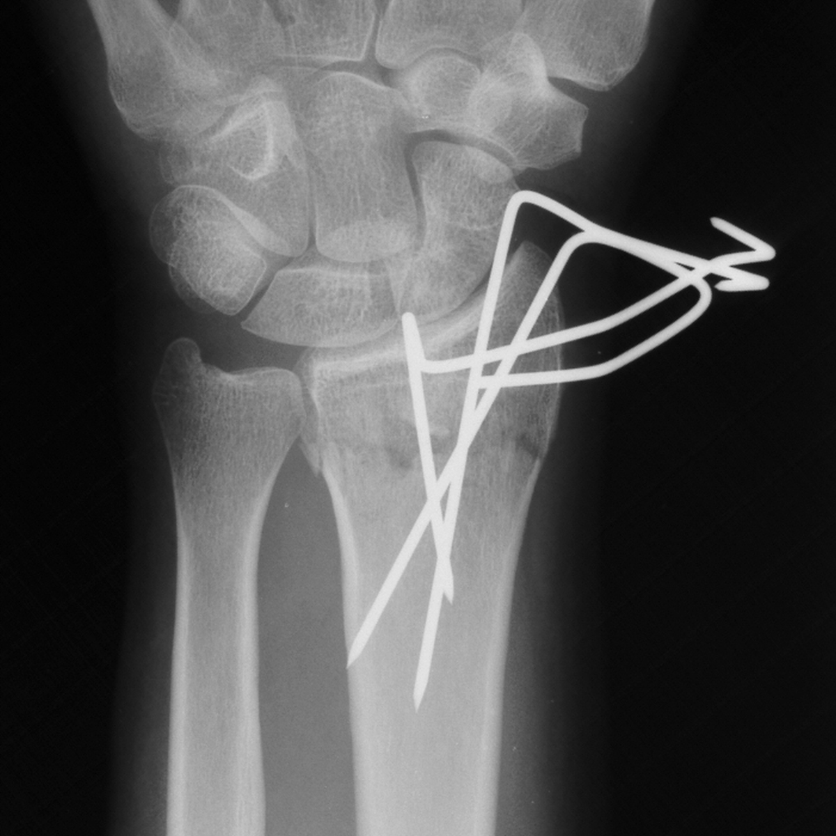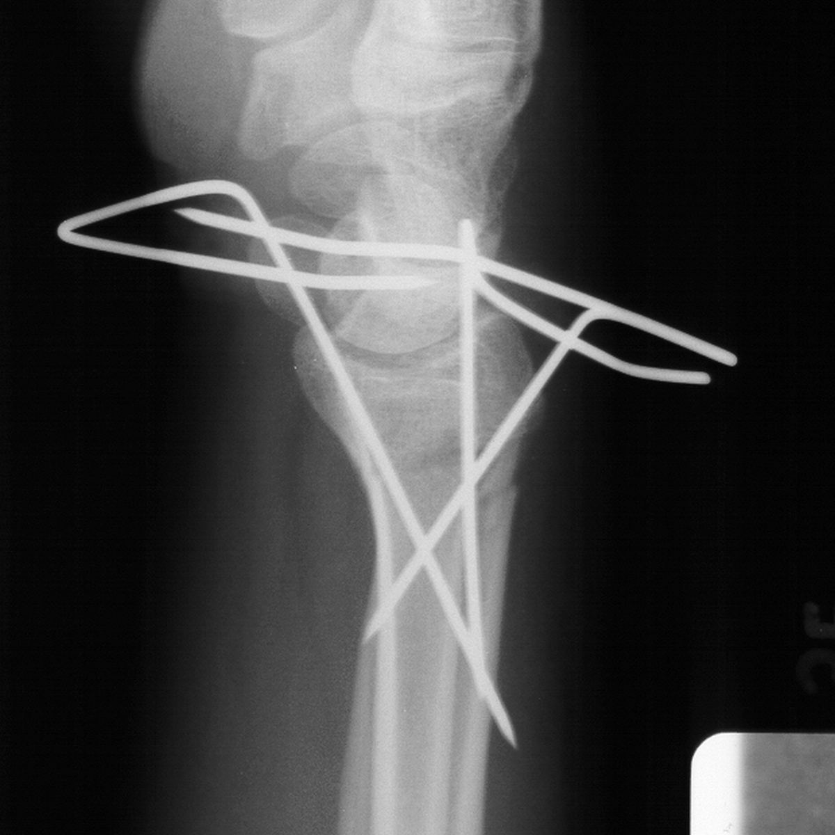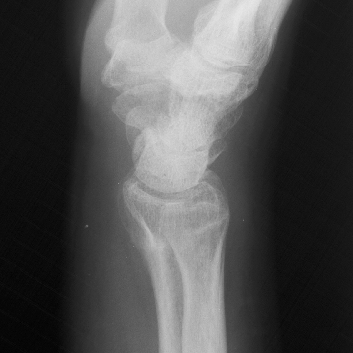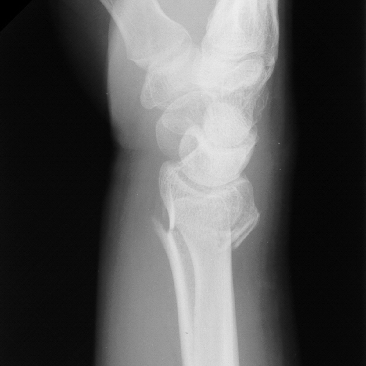 | Case 6 Extraarticular distal radius fracture with angulation and dorsal comminution. |