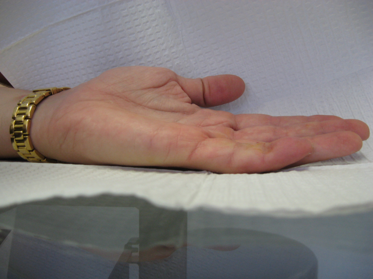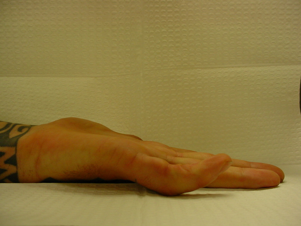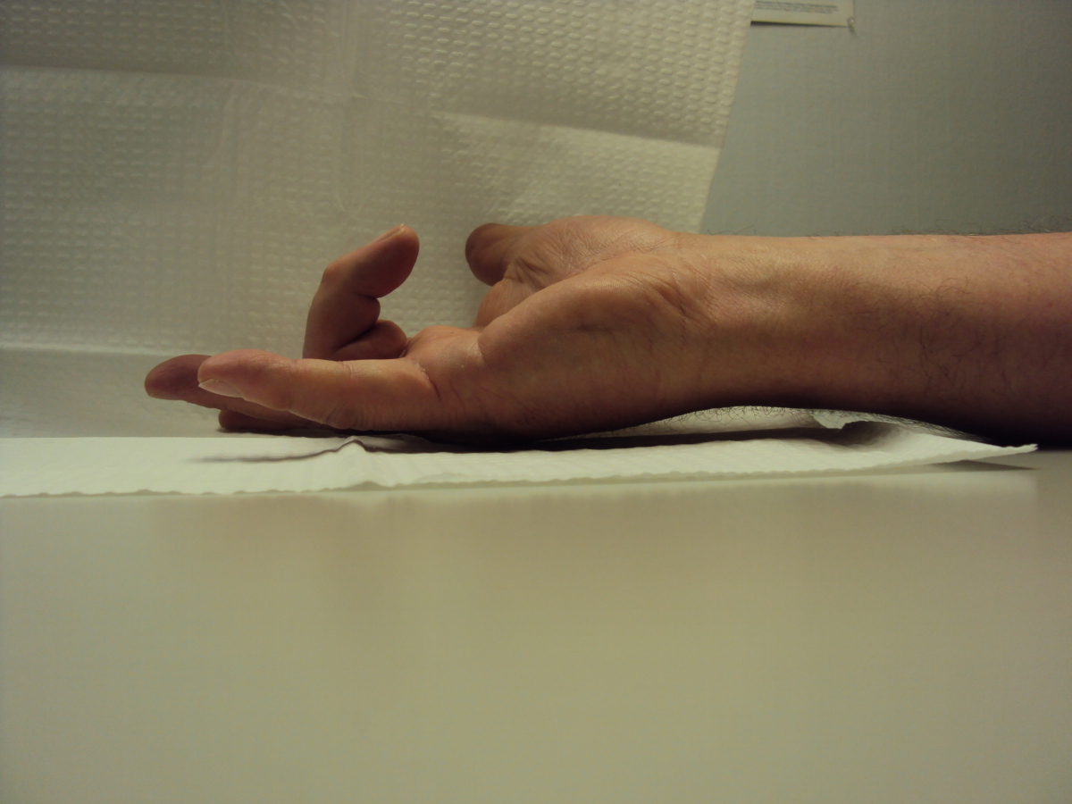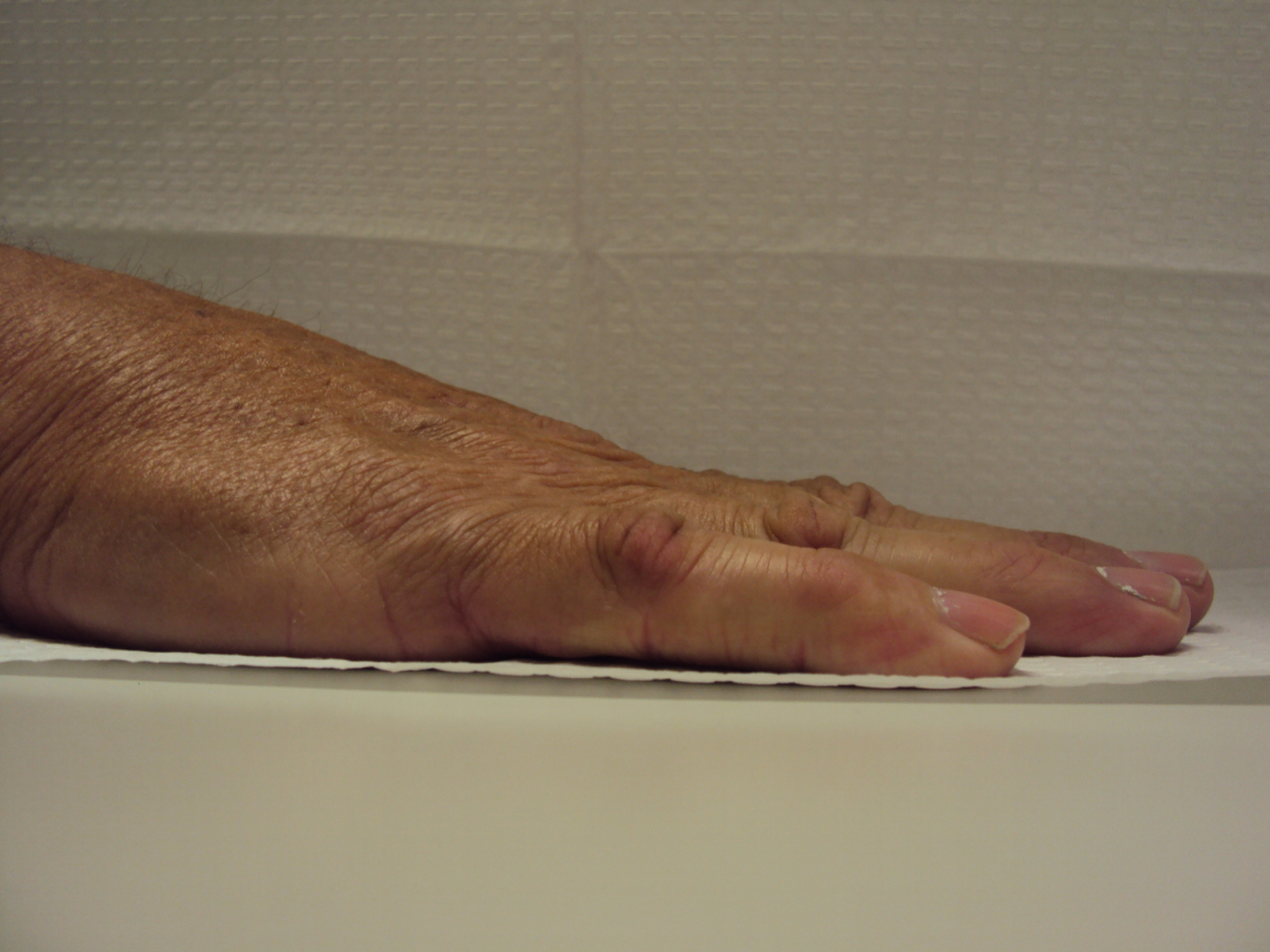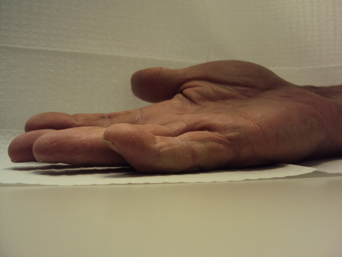 history of bilateral Dupuytren disease, worse on the right hand. |
