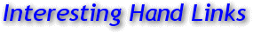 | Hands are everywhere, seemingly in everything. Some of the more interesting and diverse links to hand related topics may get lost in a large site such as e-Hand, and so are posted here for easy access. They are in no particular order. Please send a note if you wish to share an interesting hand related link. Click here for more fascinating hand trivia. |