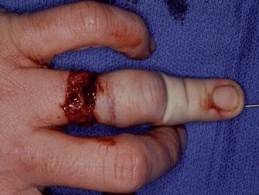 with a crush related thrombosis of the digital vessels. Blood trapped in
